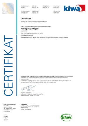 Rådets förordning för ekologisk produktion.Gäller: Falköpings Mejeri ek.för.2025-2026 KRAV-certifikat Falköpings Mejeri.pdf FIL FÖR NEDLADDNING